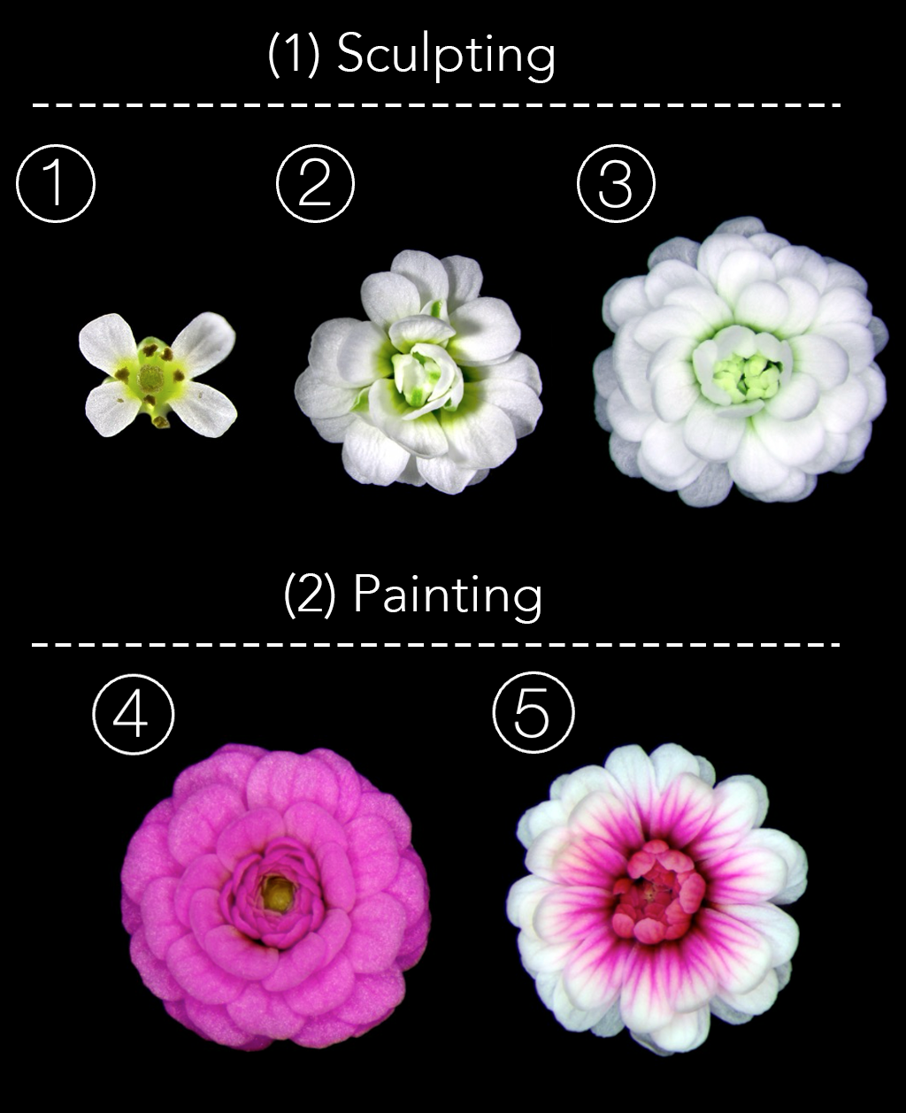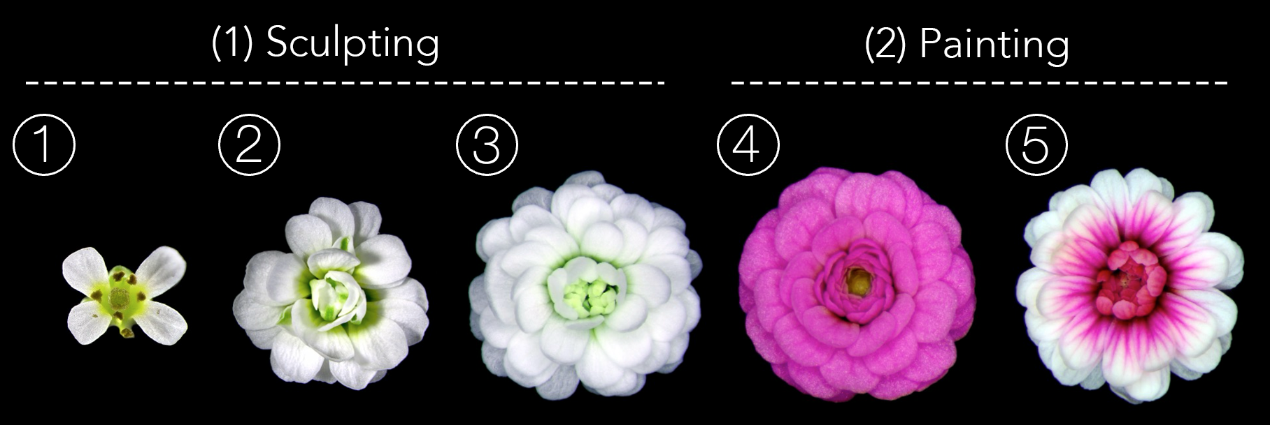 (2) Genetic Painting: Changing the colour and patterning of colours in the flower through genetic manipulation