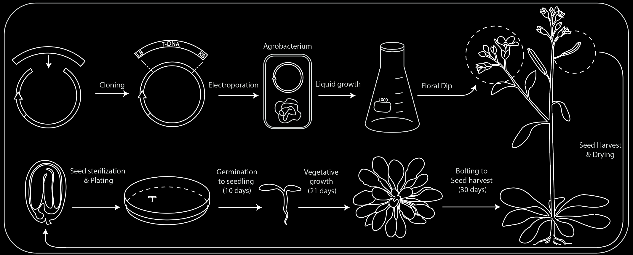 3.) Plant Transformation: The DNA construct is put into agrobacterium which inserts it into the plant genome